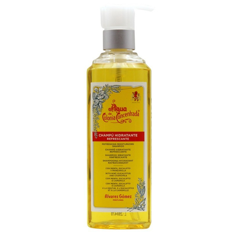 El Champú Hidratante Alvarez Gómez, enriquecido con extractos vegetales de Menta, Eucalipto y Camomilla, proporciona hidratación y suavidad al cabello de toda la familia. Este producto es ideal para revitalizar el cabello seco y darle un aspecto saludable y brillante.