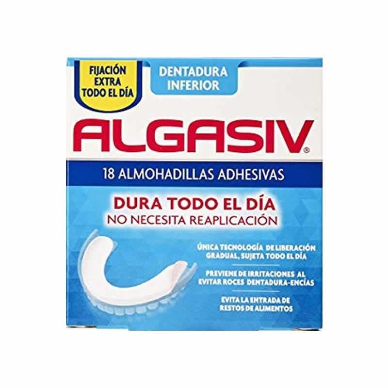 Almohadillas adhesivas para la parte inferior de las prótesis, que se adaptan a todas las dentaduras ya que se pueden recortar a medida. Su uso nos ayudará a proteger las encías y a evitar roces por llevar la prótesis floja. Además, se retira sencillamente y no deja residuos, pudiendo sustituirse fácilmente por otra almohadilla. Se recomienda guardar el primer recortado para utilizarlo como plantilla y no utilizar más de un día seguido para evitar la pérdida de sus propiedades. Elimina el peligro de que tu prótesis se caiga con Algasiv. Colocar en la dentadura, recortar y aplicar con la almohadilla humedecida en agua tibia intentando que no queden arrugas.