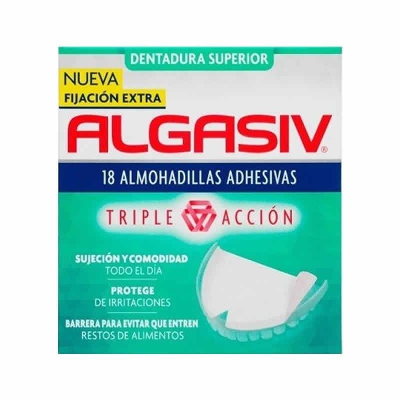 Almohadillas adhesivas para la parte superior de las prótesis, que se adaptan a todas las dentaduras ya que se pueden recortar a medida. Su uso nos ayudará a proteger las encías y a evitar roces por llevar la prótesis floja. Además, se retira sencillamente y no deja residuos, pudiendo sustituirse fácilmente por otra almohadilla. Se recomienda guardar el primer recortado para utilizarlo como plantilla y no utilizar más de un día seguido para evitar la pérdida de sus propiedades. Elimina el peligro de que tu prótesis se caiga con Algasiv. Colocar en la dentadura, recortar y aplicar con la almohadilla humedecida en agua tibia intentando que no queden arrugas.