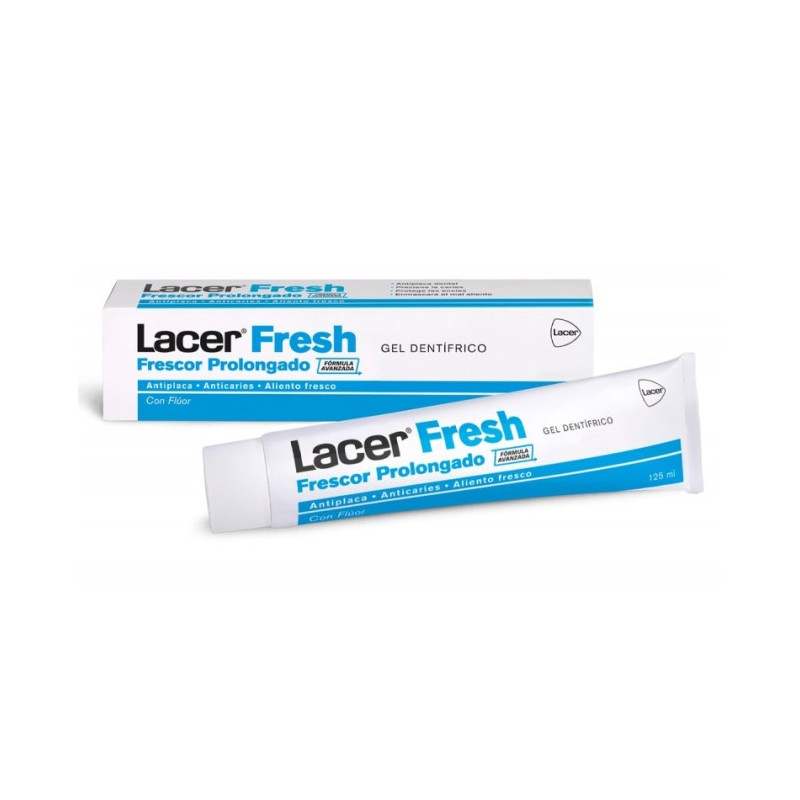 Limpiar la cavidad bucal a diario es sinónimo de unos dientes sanos y resistentes a cualquier mordisco. Por este motivo, es fundamental realizar al menos un par de cepillados al día, garantizando la máxima higiene de una de las partes mucosas más delicadas de nuestro organismo. Lacer Fresh gel dentífrico te ayuda a prevenir las infecciones de origen bucal, evitando la aparición de caries y combatiendo con eficacia los problemas gingivales. Gracias a una fórmula enriquecida con triclosán, xilitol, fluoruro sódico y cloruro de zinc tus dientes están más limpios y protegidos en cada lavado. ¡Aliento fresco a diario!