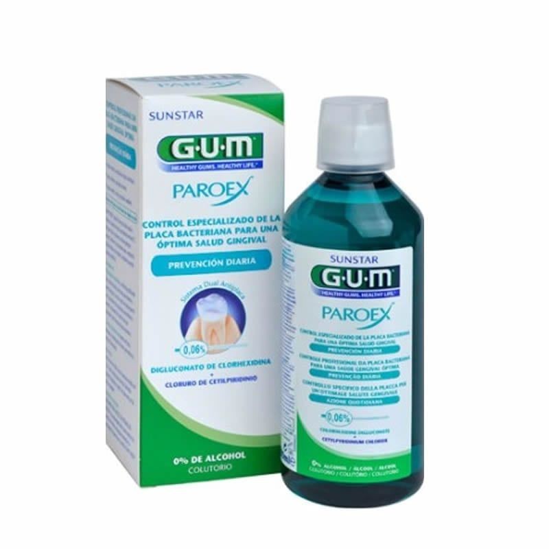 El colutorio de la línea Paroex de GUM elimina la placa bacteriana acumulada entre los dientes, por lo que consigue una correcta higiene bucal. Ideal para personas con problemas de encías, sobre todo si las tienen sensibles. Recomendado también para portadores de ortodoncia, implantes, dentaduras u otro tipo de prótesis.
