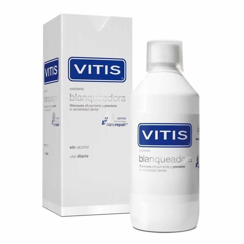 Colutorio que blanquea los dientes eliminando las manchas ya existentes y evitando la aparición de otras nuevas. Este colutorio, completa la acción de la pasta dentífrica, ya que llega a las zonas interdentales de difícil acceso y mantiene los principios activos más tiempo en tu boca. Además, su fórmula incluye la exclusiva tecnología Dentaid Technology Nanorepair, que se combina y se integra con superficie del esmalte dental, creando una capa protectora y resistente al lavado. Enjuagarse al menos 2 veces o al día después de las comidas y del cepillado.