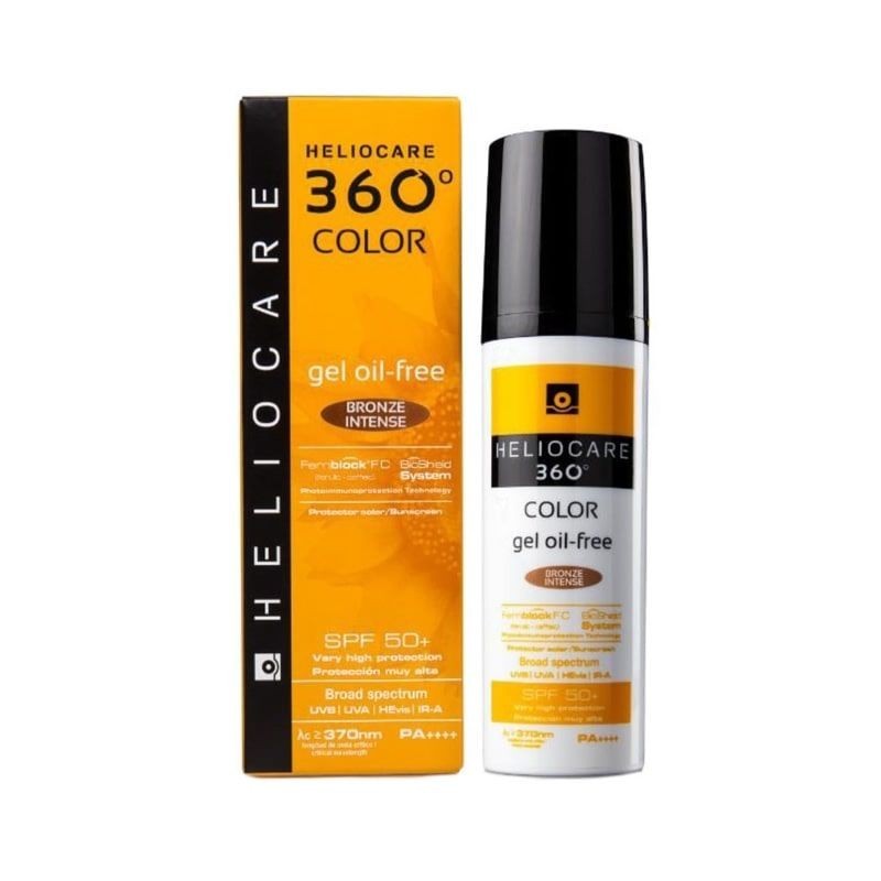 Heliocare 360° Color Gel Oil-Free SPF 50+ es un solar con color en formato gel ultraligero que proporciona un acabado seco. Unifica el tono y cubre las imperfecciones de manera natural. Su fórmula 360°combina la exclusiva tecnología Fernblock® FC, que garantiza fotoinmunoprotección frente a las cuatro radiaciones (UVA, UVB, Vis, IR), potente acción antioxidante y reparadora frente al daño solar. Con SPF50+. Acción seborreguladora gracias a Aminat G y Fitoesfingosinas y con efecto mate.