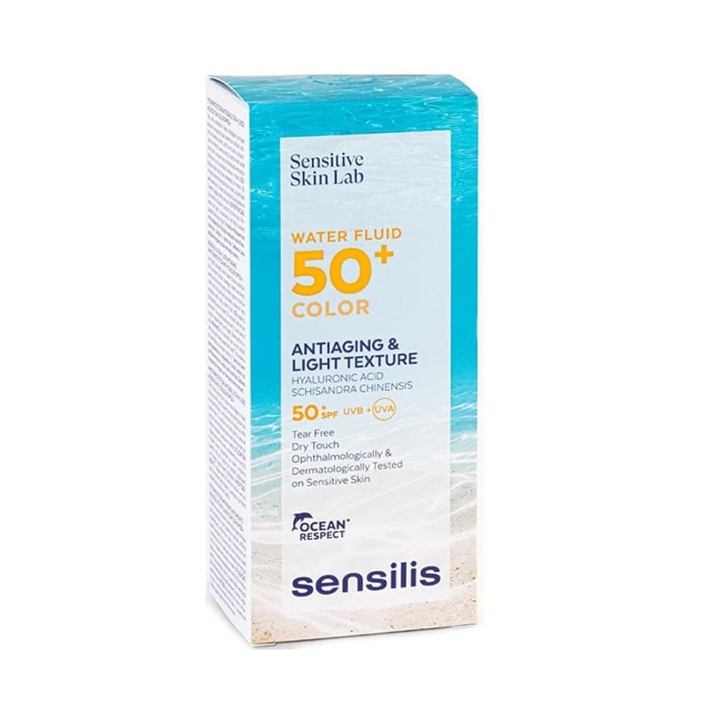 Sensilis SSS Water Fluid 50+ Color 40 ml es un fotoprotector antiedad ultrafluido acuoso SPF50+ con color y muy alta protección facial. Con textura ultraligera de base acuosa que aporta una cobertura natural, disimula imperfecciones, unifica el tono y proporciona un efecto buena cara. Se funde con la piel rápidamente y proporciona una delicada sensación de frescor con un acabado invisible, sedoso y mate. Fórmula respetuosa con tu piel y con el planeta.