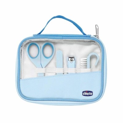 Set de manicura en color azul pensado para mantener las manos y las uñas de tu pequeño en perfecto estado desde el nacimiento. Este se incluye unas tijeras con hojas curvas y puntas redondeadas que evitan que el corte pueda dañar su delicada piel, 6 limas para uñas, un cortaúñas con mango antideslizante para garantizar la máxima seguridad y un cepillo de uñas con cerdas hipoalergénicas para evitar reacciones de la piel. Se comienza la manicura tomando la manita del bebe y cortando el excedente, después se lima y se toma el cepillo para limpiarla.