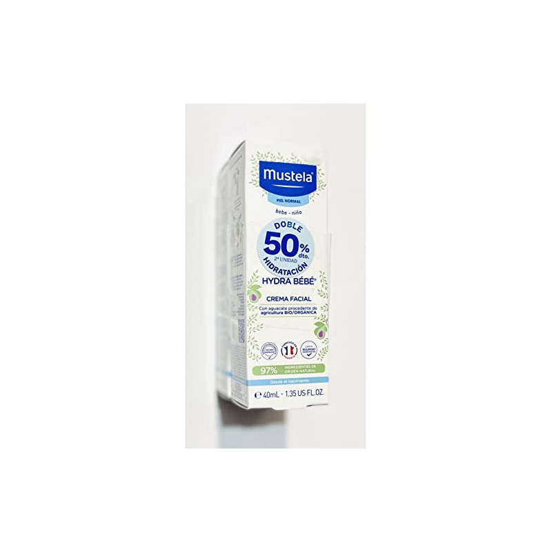 Crema hidratante BIO de la marca de cuidado del bebé Mustela, con aceite de oliva para nutrir intensamente la piel.