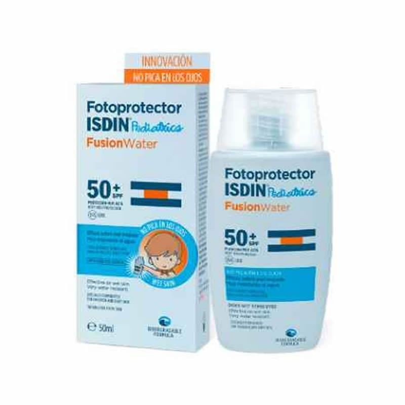 El Fotoprotector ISDIN® Pediatrics Fusion Water SPF50+ es ideal para el rostro de los niños y bebés, siendo de una textura ultra-ligera y de rápida absorción formulado a base de agua. Su tecnología safe-eye tech evita que pique en los ojos. Actúa sobre la piel mojada y es resistente al agua y a la fricción. Protege de los rayos solares UVA y UVB con factor de protección solar SPF 50+.
