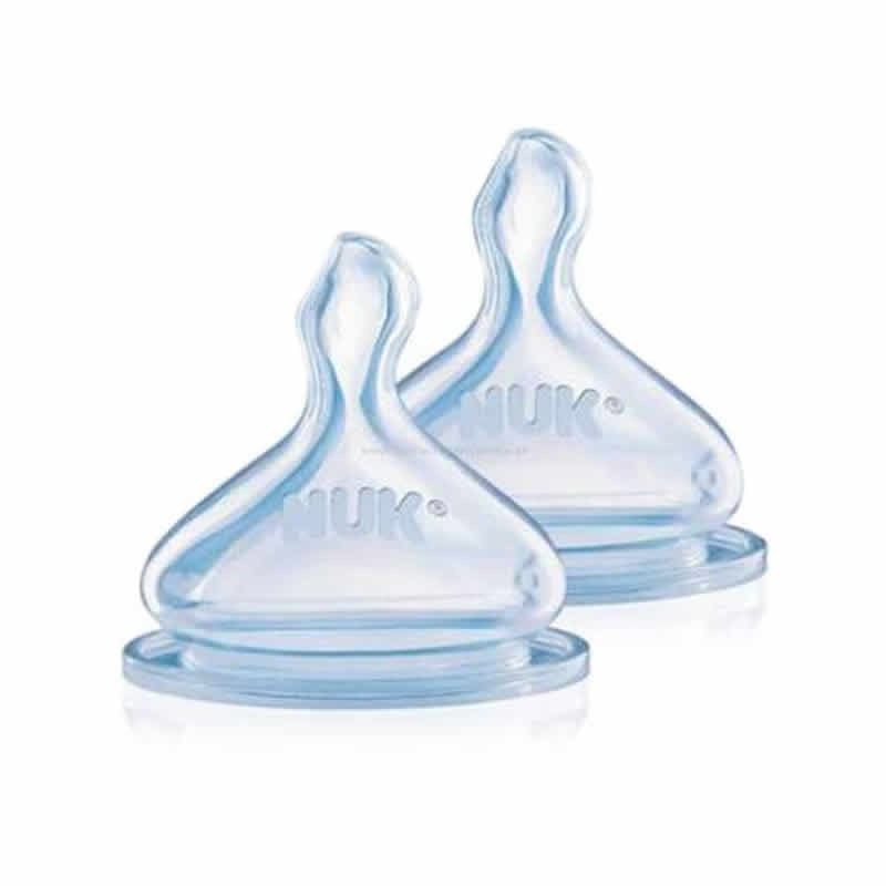 Pack de dos Nuk de la gama First Choice para niños de entre 0 y 6 meses. Fabricadas en silicona. Talla M. Con diseño anatómico que se adapta a la perfección a la boca del bebé.